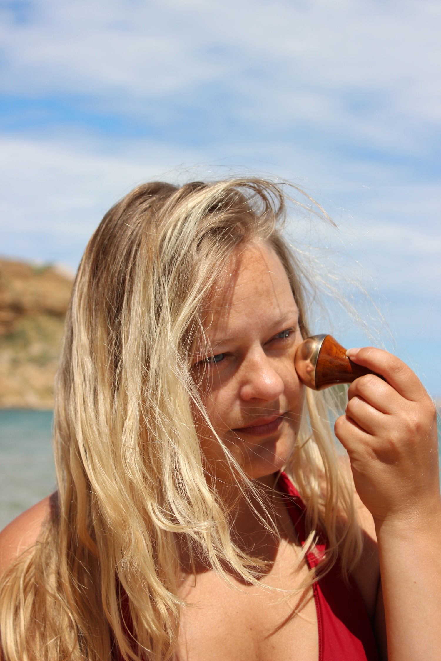 Mini Kansa Wand er det perfekte værktøj for dem, der søger målrettet pleje til sarte områder, især omkring øjnene. Dens kompakte størrelse gør den ideel til præcis Marma-punktmassage, som fremmer afslapning og balancerer energien, hvor det er mest nødvendigt. Designet til både bekvemmelighed og effektivitet er Mini Kansa Wand også en fremragende rejseledsager, der giver dig mulighed for at opretholde din hudplejerutine på farten.