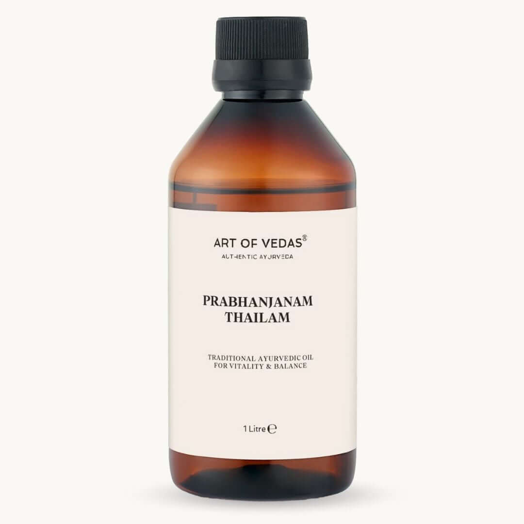 Prabhanjanam Thailam is specifically formulated to pacify aggravated Vata, the dosha governing movement, circulation, and the nervous system. The grounding, nourishing nature of sesame oil combined with warming herbs helps restore balance when Vata becomes excessive—manifesting as dryness, stiffness, tension, or discomfort.